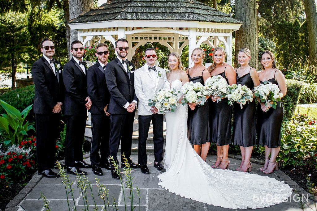 And just like that, our couple for the day was ready for a round of family and friend photos. As the wedding guests decided to relax, our photographer took photos of the couple with their family and friends. Before the couple posed with their bridesmaids and the groomsmen, our photographer helped them pose with their families. After the group photos, our photographer helped them pose with each of the family and then helped them pose for photos with their closest friends. Using a gazebo in the wedding venue, our photographer helped them pose for photos there. Apart from group photos our photographer also helped the two take romantic couple photos. Although they did not have a first-look photo shoot, our photographer placed Courtney in the back and Erik in the front so that they could look like they were posing for a first-look photo session.