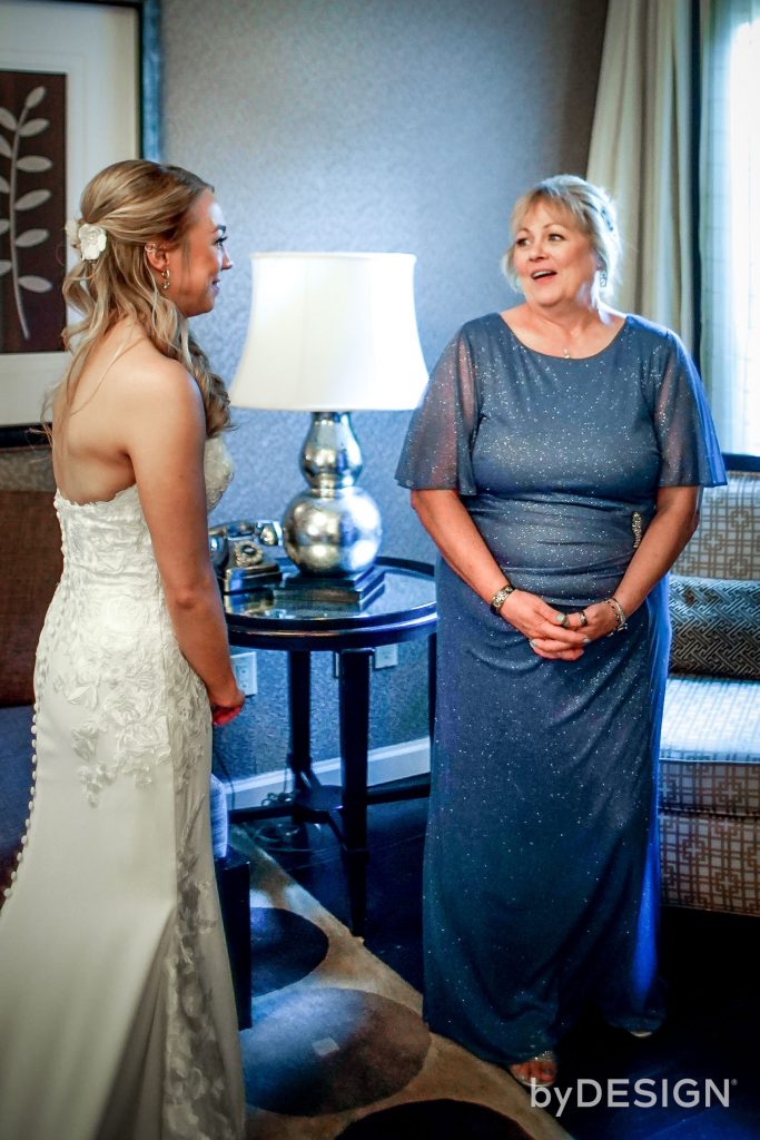 Courtney’s wedding dress was from Pronovias New York and was as beautiful as the bride herself. The beautiful white bridal dress had lace details and a lovely illusion neckline. To make her wedding dress look even better, Courtney decided to let her hair down and don a beautiful naturally swept bridal hairstyle. To this, we also loved her wedding makeup. Since the wedding decor ideas the couple picked out for the day, she matched them with simple and glowy wedding makeup. With minimal yet natural-looking bridal makeup, Courtney looked just perfect! As her wedding bouquet, she had a beautiful white hand-tied bouquet. This bouquet was large and absolutely stunning. To match this, Courtney’s bridesmaids also carried beautiful white bouquets, this made all of them look alike and made the day’s details look synchronized. As it was with the groom and the groomsmen, the wedding day outfits the bride and the bridesmaids chose were the same. The bridesmaids decided to go with beautiful black satin dresses for the day. We loved how the girls looked right next to each other. As the bride was getting dressed, our photographer took photos of the details these two, Erik and Courtney, had picked out so carefully. Our wedding photographer took photos of the wedding stationery and also took photos of the rings. Our photographer also placed the engagement rings of the couple along with the wedding bands on top of the delicate wedding invitation set to take an amazing photo.
