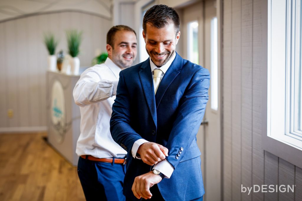 As the ceremony approached, the wedding party, dressed inĀ ivory bridesmaid gownsĀ of varying silhouettes, and the groomsmen, mirroring Nicholas’s elegance in royal blue, gathered by the lakefront. This picturesque setting, with its pristine views, fountain centerpiece, and lush greenery, served as the backdrop for the couple’s first look portraits ā a moment of pure, unadulterated love.