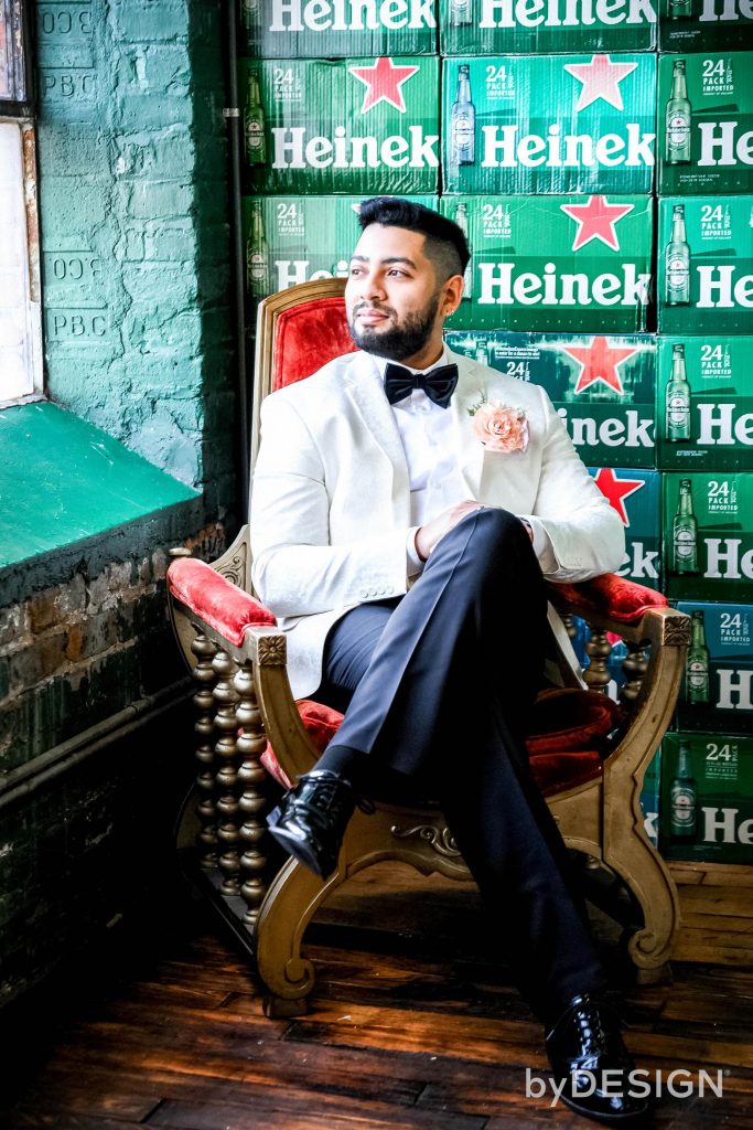 The wedding day of Ashley and Kevin was a celebration filled with intimate moments, personal touches, and the charm of an industry-themed venue in New York. The day began with capturing the stunning details of their meticulously planned ceremony space. The venue, with its timber ceilings, distressed walls, and open-concept floor plan, set the stage for a day that beautifully blended elegance with rustic charm.
