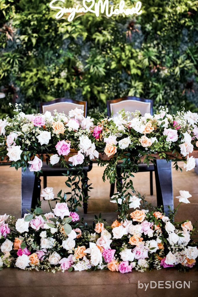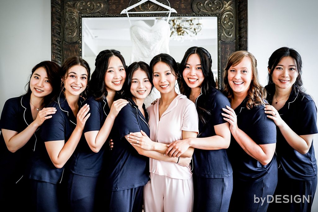 As the morning unfolded, Su Yin’s bridesmaids surrounded her in a sea of light pink, each dress in a different silhouette, creating a perfect mismatched ensemble that beautifully complemented the day’s aesthetic. Meanwhile, the groomsmen, in their matching black suits with crisp white shirts and black bow ties, stood as a cohesive and striking counterpart to the bridal party. The ceremony itself was a vision of outdoor elegance, set against a backdrop of a lush greenery wall and a stunning floral arch. Su Yin and Michael exchanged heartfelt vows, promising each other a lifetime of love and happiness, their words resonating with sincerity and joy amidst the natural beauty that surrounded them.